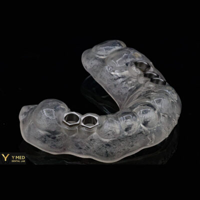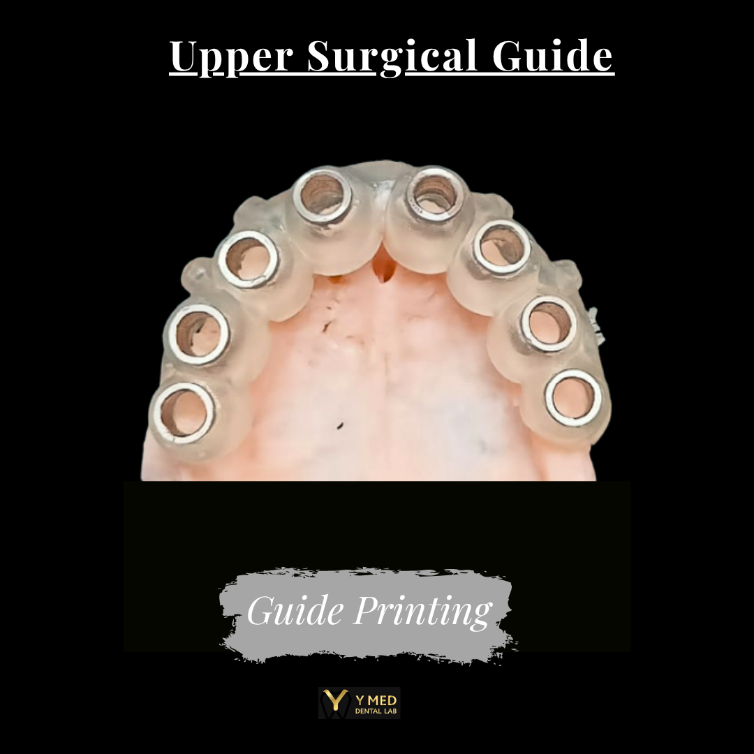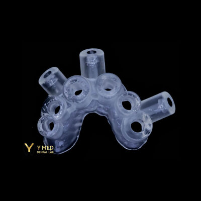 A tooth-supported surgical guide is a 3D-printed template used during dental implant surgery to ensure precise placement of implants according to the digital treatment plan. It is designed to fit snugly over the patient’s remaining teeth, providing a stable and accurate reference during drilling and implant insertion. Y Med Surgical Guides are made from biocompatible transparent resin which allows visibility during surgery.
